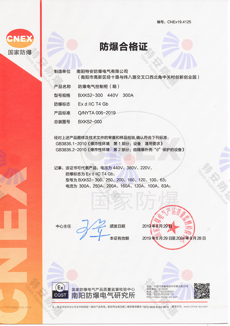 防爆電氣控制柜(箱)IIC 中國國家強制性認證證書(3C證書)