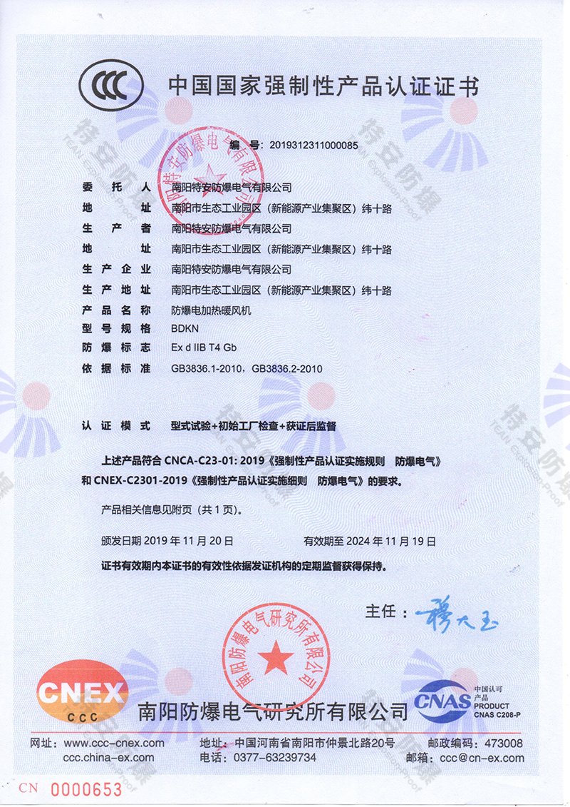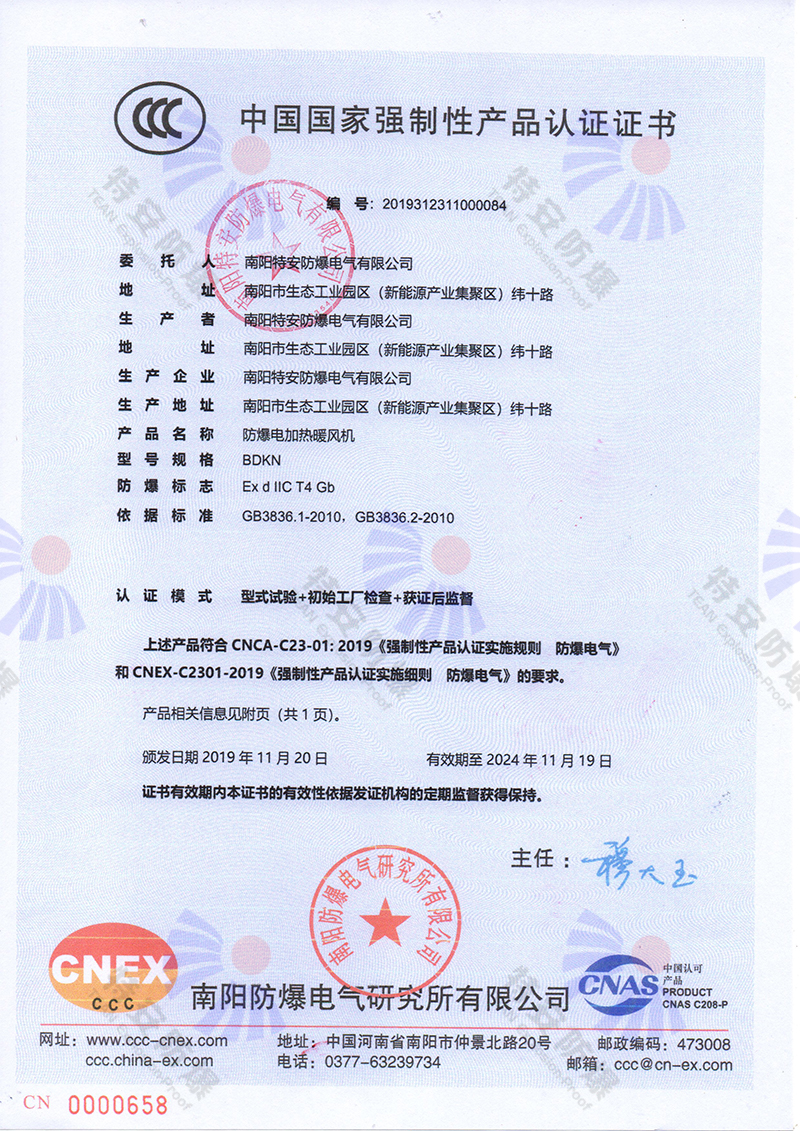 防爆電加熱暖風(fēng)機(jī)CNEX防爆合格證