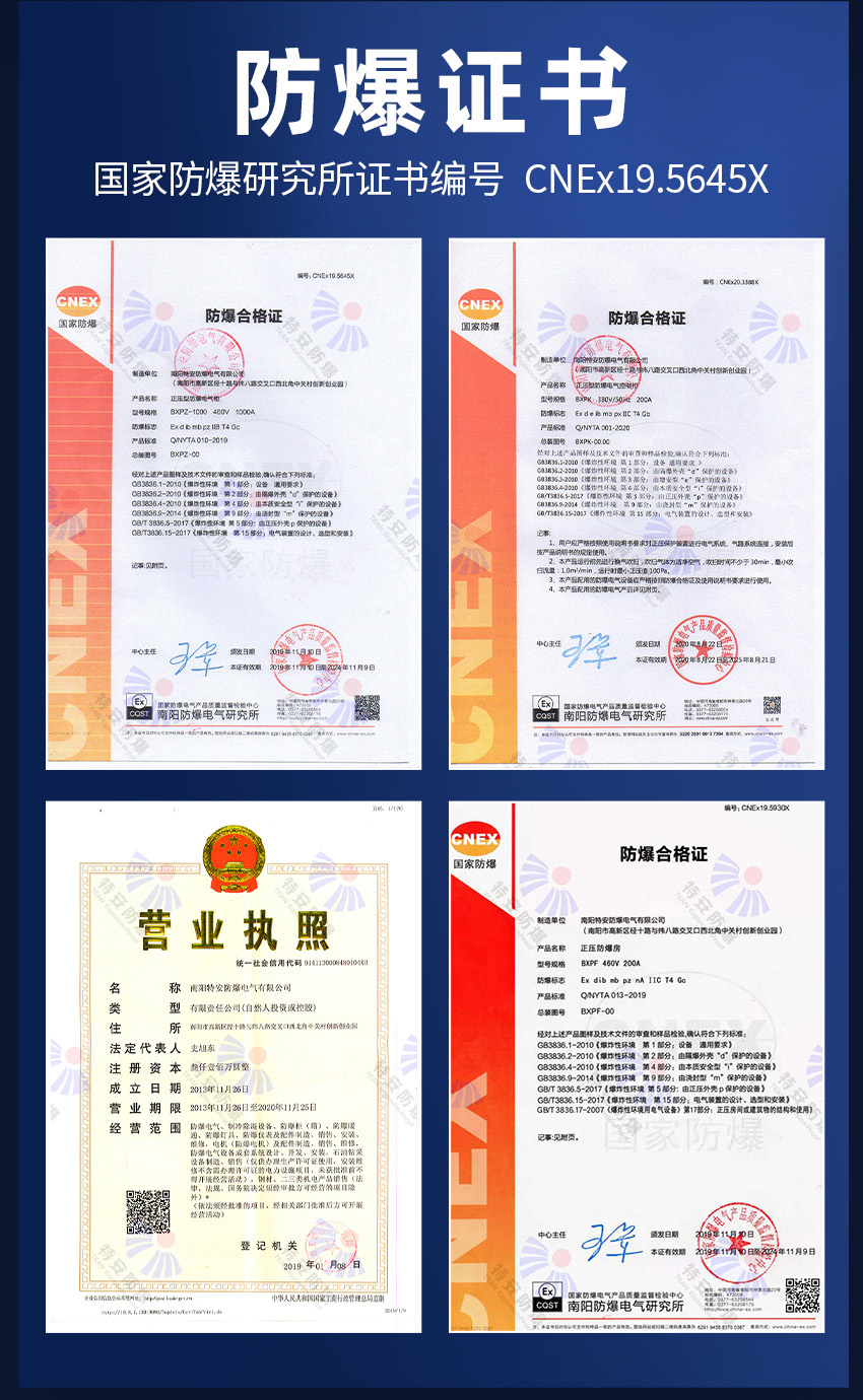特安防爆專業(yè)生產:防爆控制柜,防爆電氣控制柜,防爆電器控制柜,我們擁有防爆研究所頒發(fā)的CNEX合格證,證書編號為CNEX19.4124