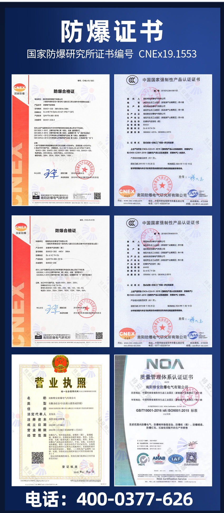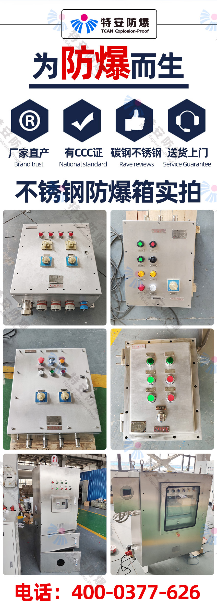 特安防爆專業(yè)生產:防爆配電箱,防爆控制箱,防爆電控箱,防爆接線箱,防爆配電柜,防爆電氣控制箱,防爆電氣控制柜等各種防爆箱柜。我們擁有防爆研究所頒發(fā)的CNEX合格證,證書編號為CNEX19.4124
