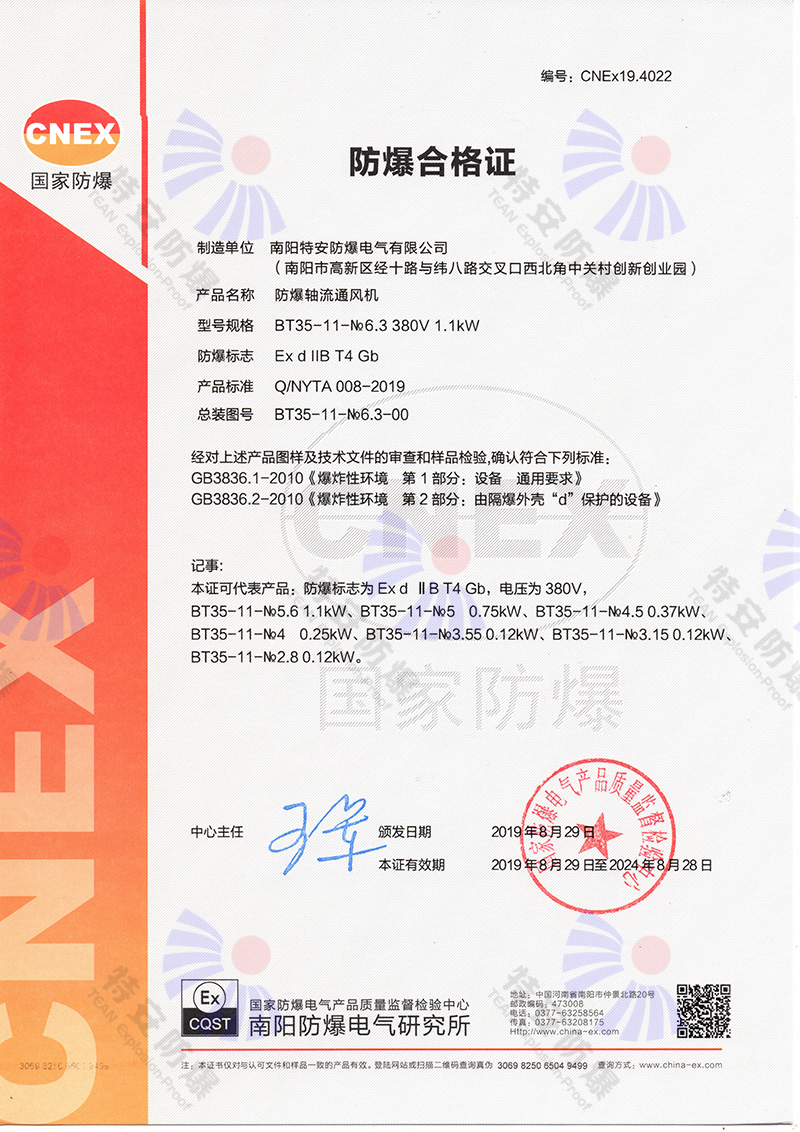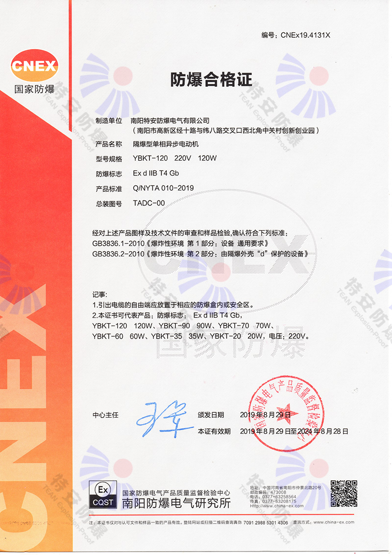 防爆電機防爆合格證