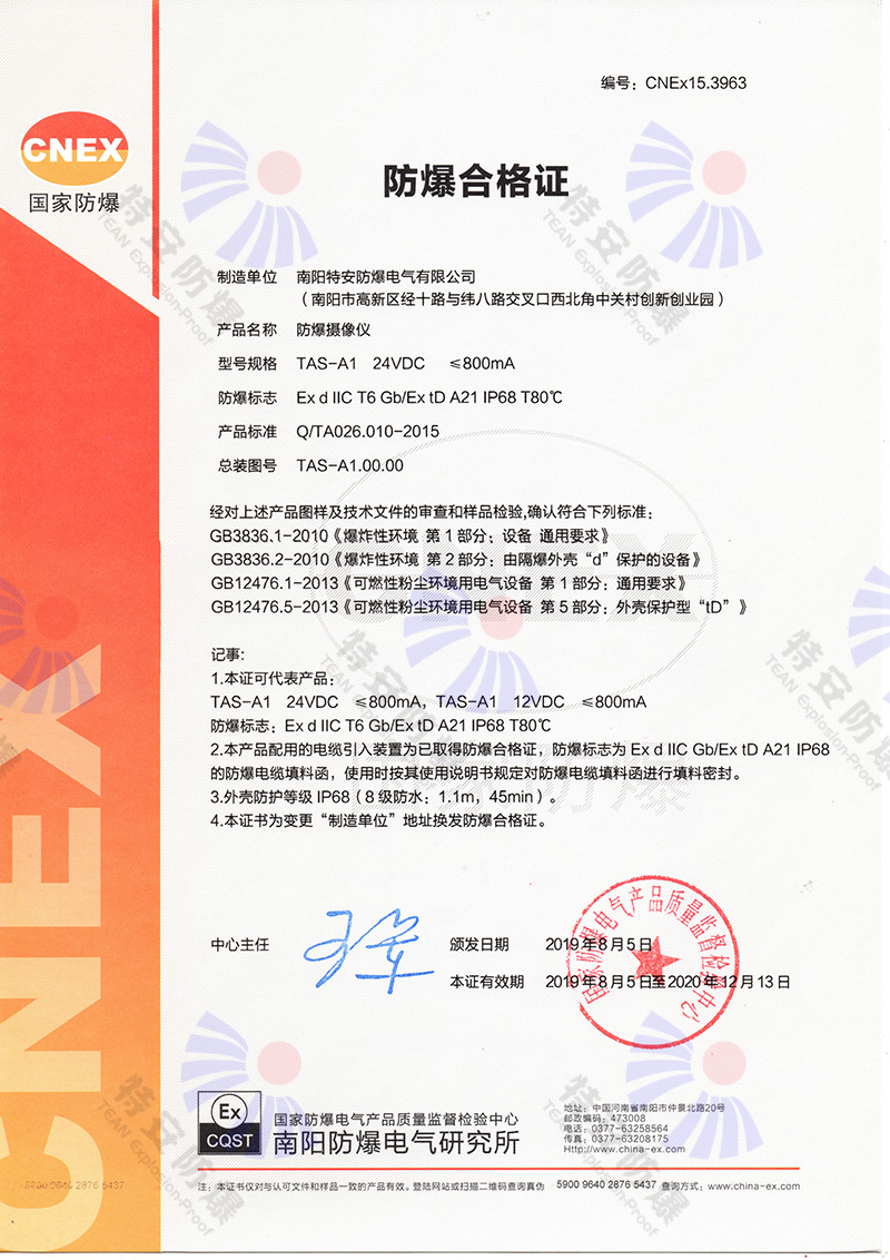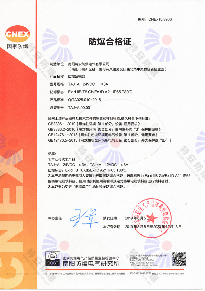 防爆監(jiān)視器防爆合格證