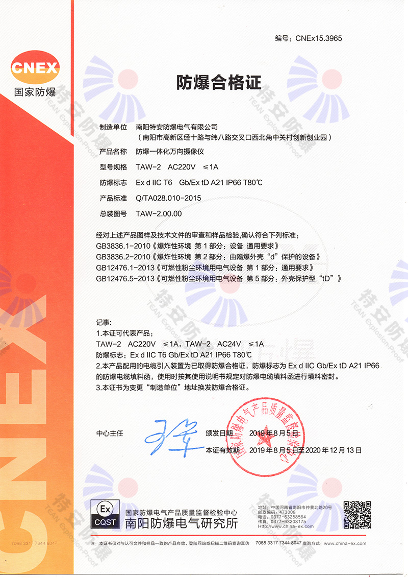 防爆攝像儀防爆合格證